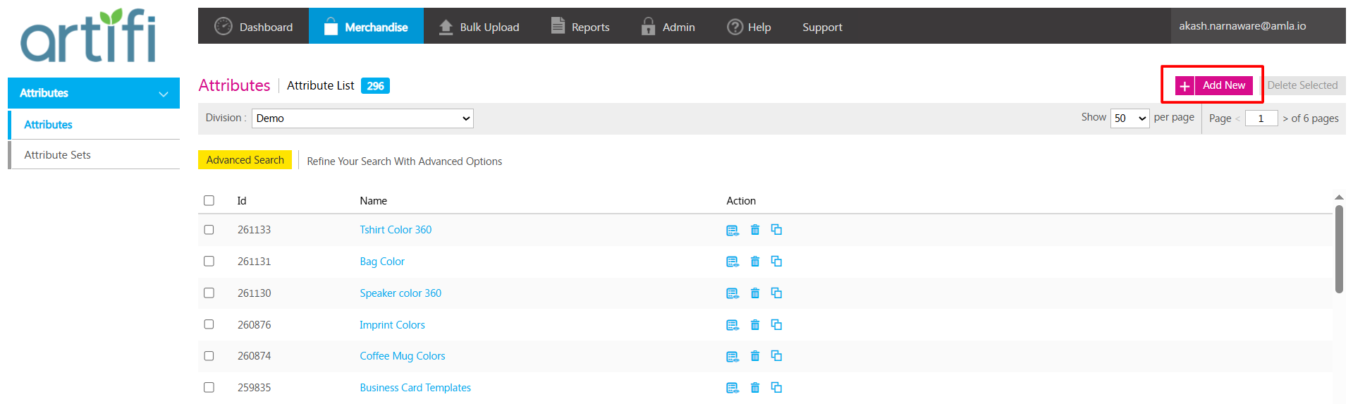 2.The Attribute Listing page will appear. To create a new attribute, click on the Add New button in the top-right corner.