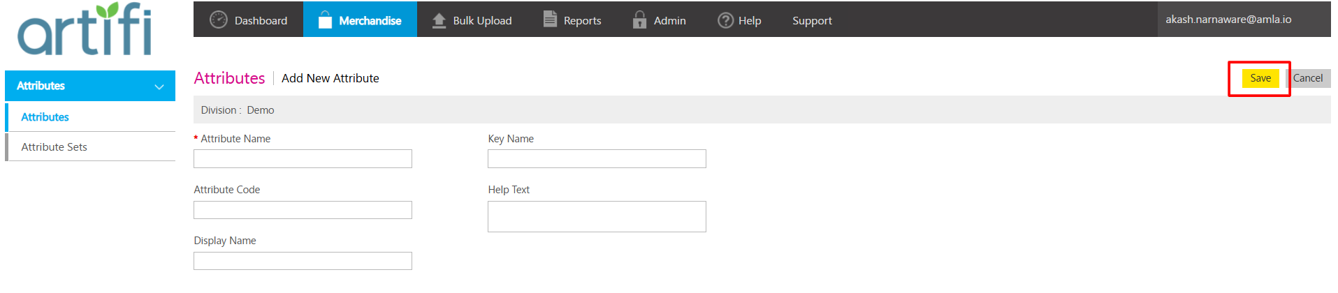 4. Save the attribute details by clicking the “Save” button in the top-right corner. The attribute will now be added under your Division.