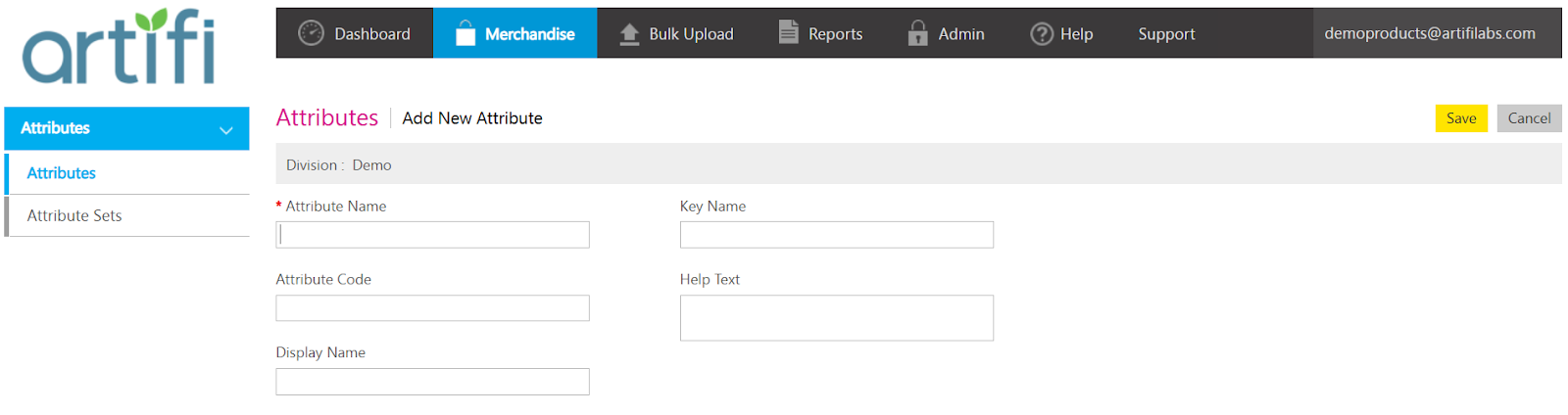 Navigate to: Merchandise > Attributes > Add New