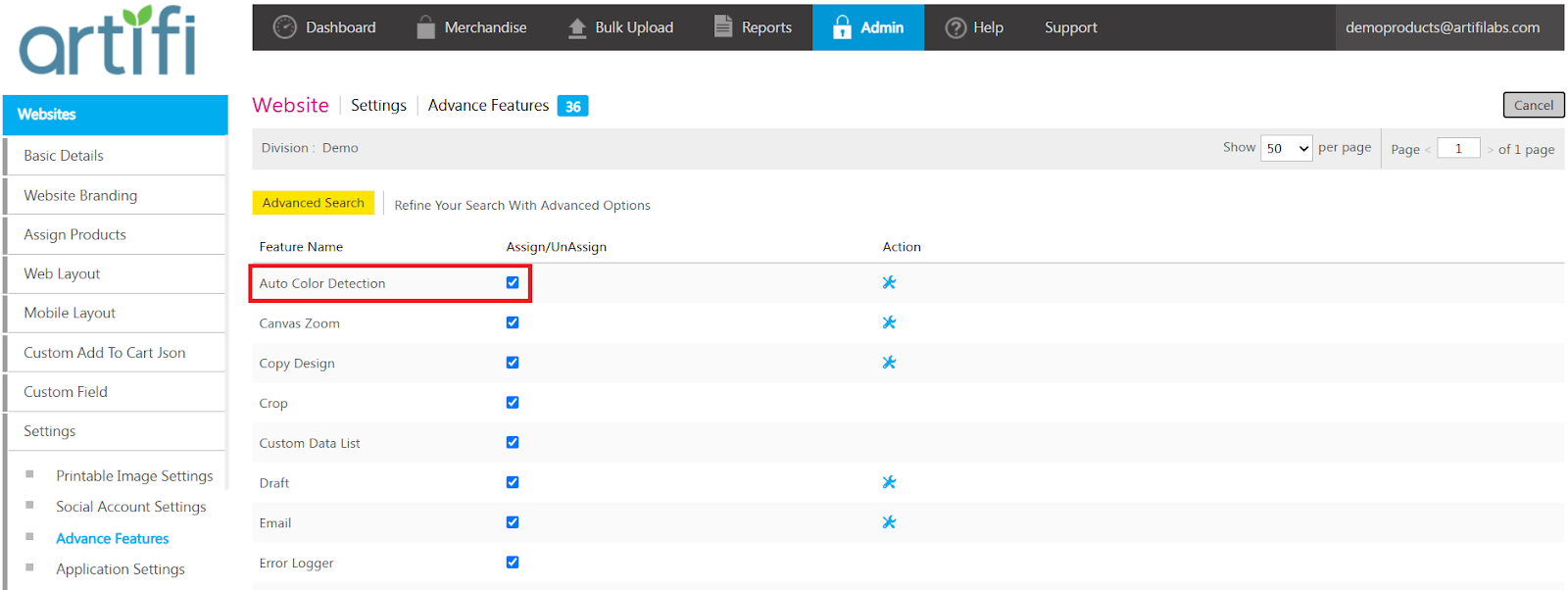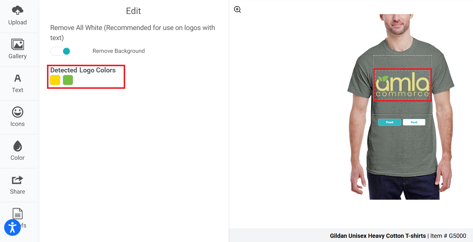 When a user uploads a logo, selects a logo from "My Art," or chooses a clipart, Artifi detects the colors present in the image.