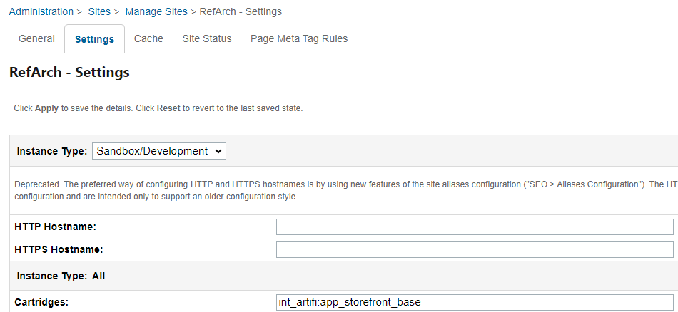 - Go to Business Manager > Administration > Sites > Manage Sites > Your Site > Settings.