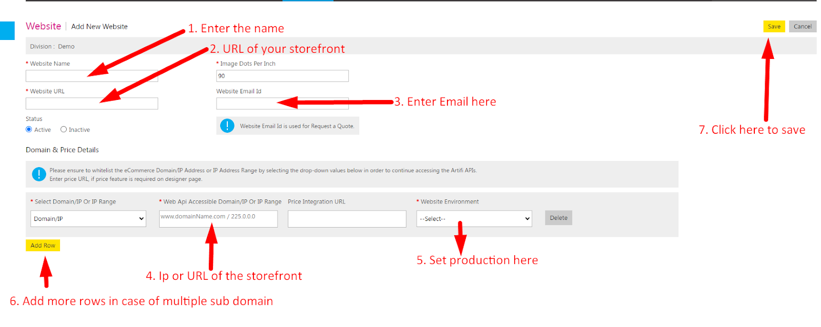 3.5.1 Whitelisting the Domain on the Artifi Dashboard