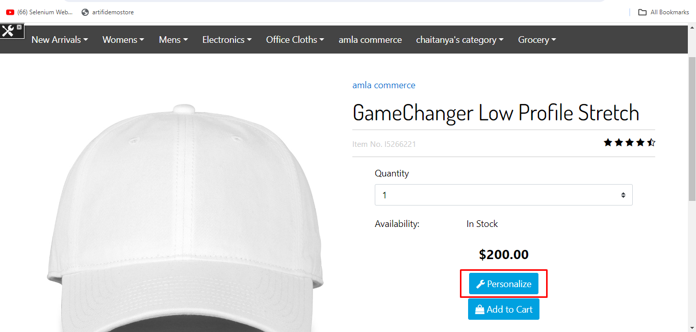 | Optional | Both 'Add to cart' and 'Personalization' buttons are present. |