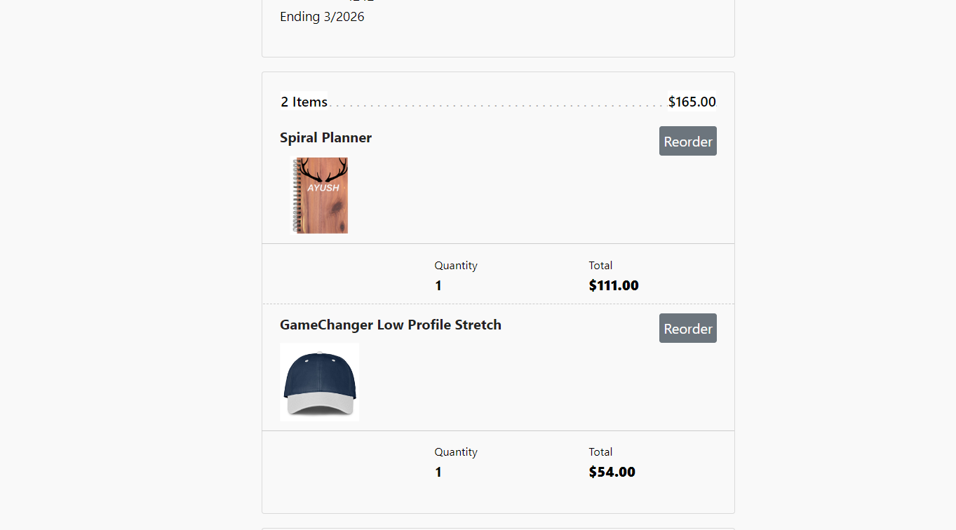 - You can view past orders and select the item to reorder, which will be added to the cart with the same customization.
