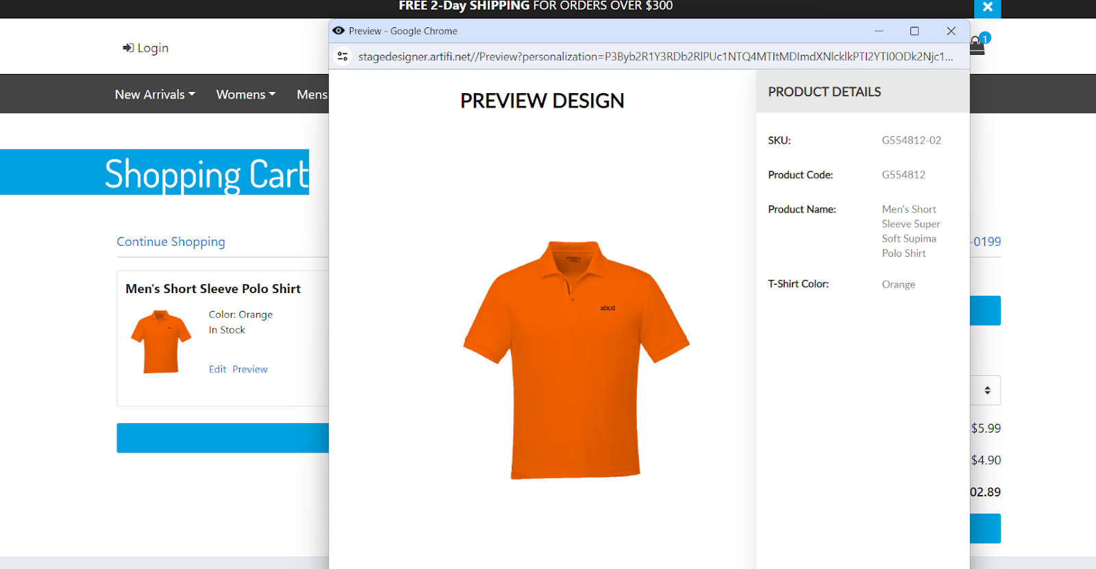 For customized products, a preview option is available before checkout. Users can click this to view their personalized product.