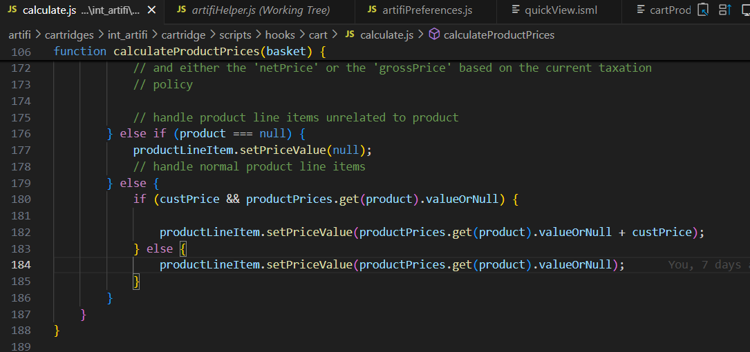 7. In calculate.js file adding this customize price to main price(storing custom price coming from product line item in a variable named custPrice and adding this price to original price)
