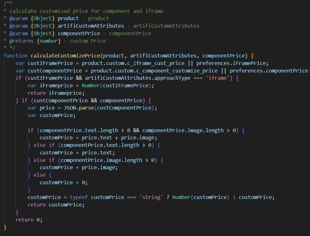 5. Created a custom attribute in product line item and stored custom price in this attribute for both iframe and component in this file