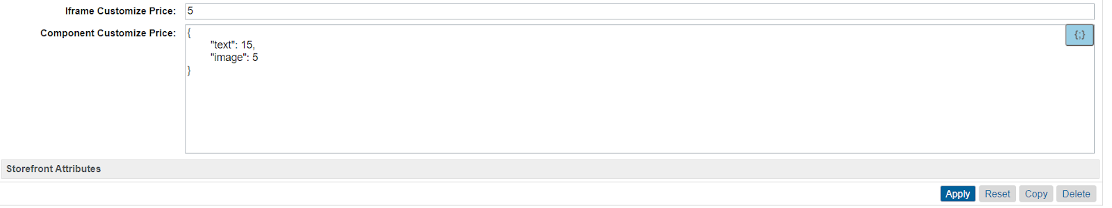 6. In case of iframe only a single price will be added by merchant for customized price both at global and product level but in case of component , text price is different and image price is different which is stored in a json format.