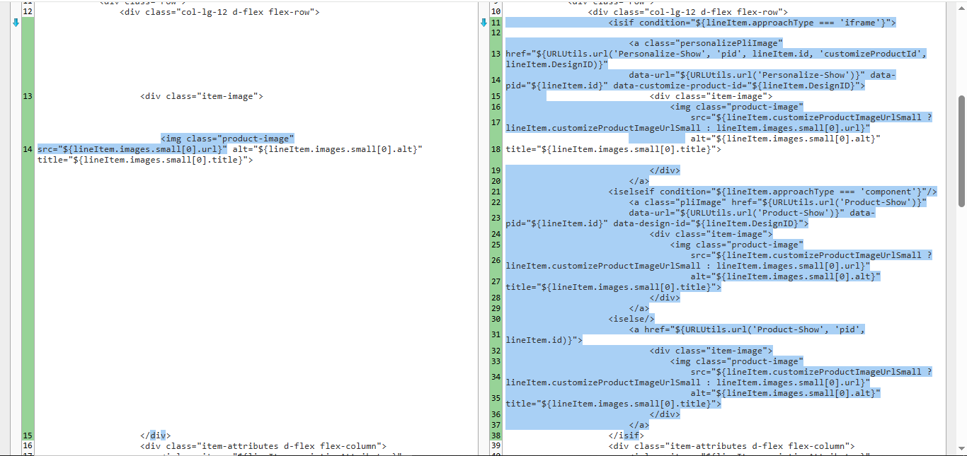 Purpose: This update replaces the default product image block with logic that displays a customizable product image and provides appropriate redirect links (iframe, component, or normal PDP) based on the item’s personalization approach type.