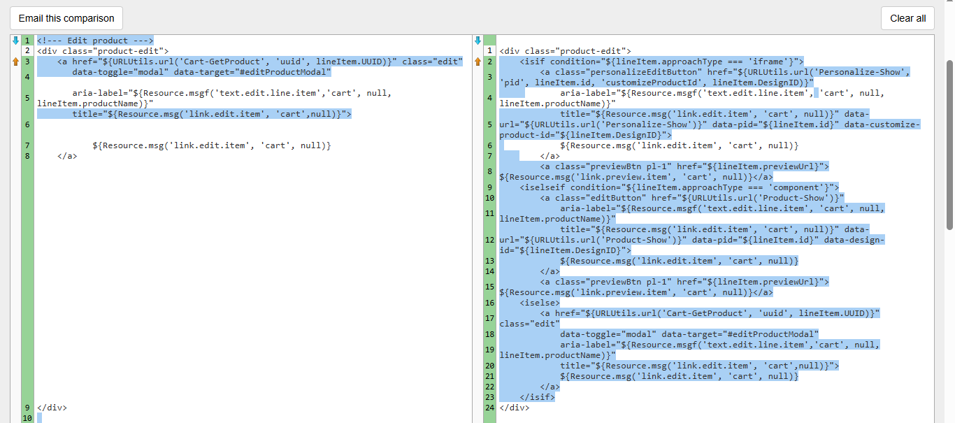 Purpose: This update replaces the default “Edit Item” link with dynamic personalization edit links that redirect to either iframe, component, or standard PDP editing flow based on the product’s customization approach type.
