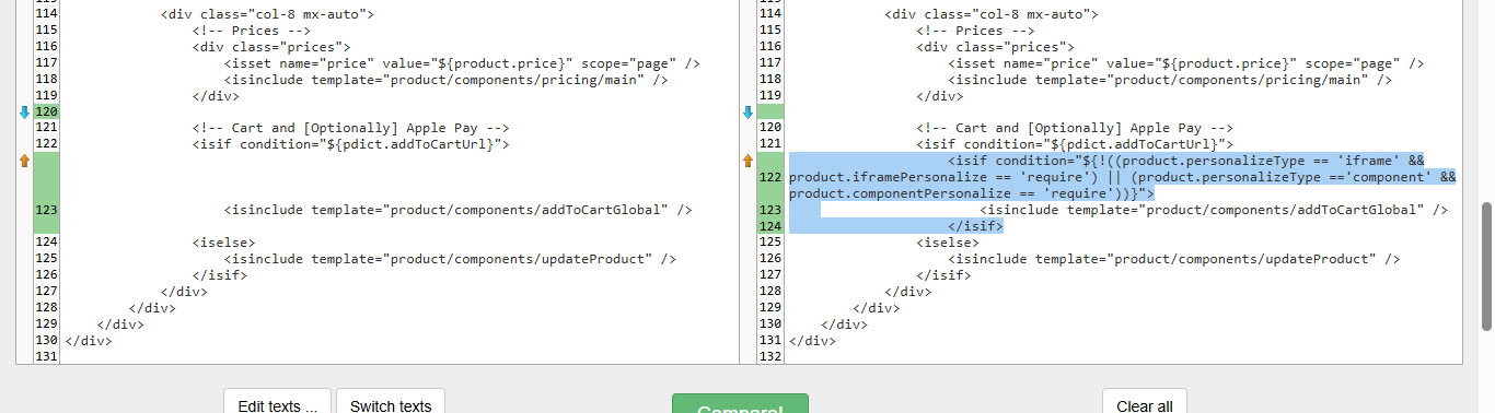 | 2. Personalize.js | Manages product personalization features. | To render a custom ISML template (personalize/iFramePersonalization) for product customization and to handle reorder functionality by validating the logged-in user and fetching order details. |